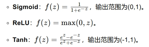 激活函数:将加权求和的结果通过一个非线性函数(如Sigmoid、ReLU、Tanh等)进行处理,以引入非线性能力。
