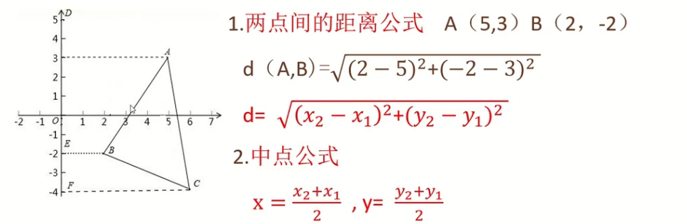 2)两点距离公式和中点公式
