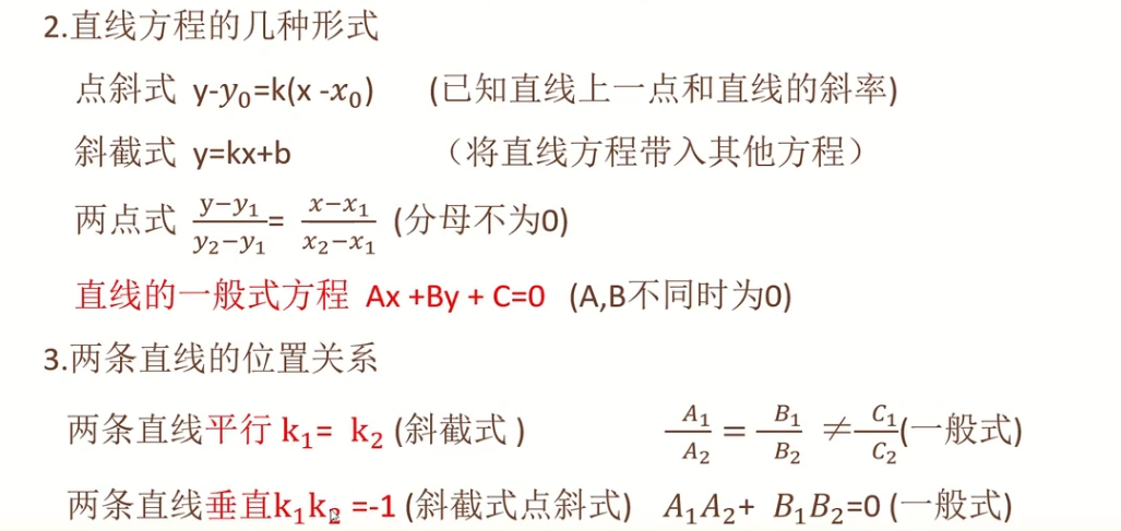 3)直线方程 y = kx + b
