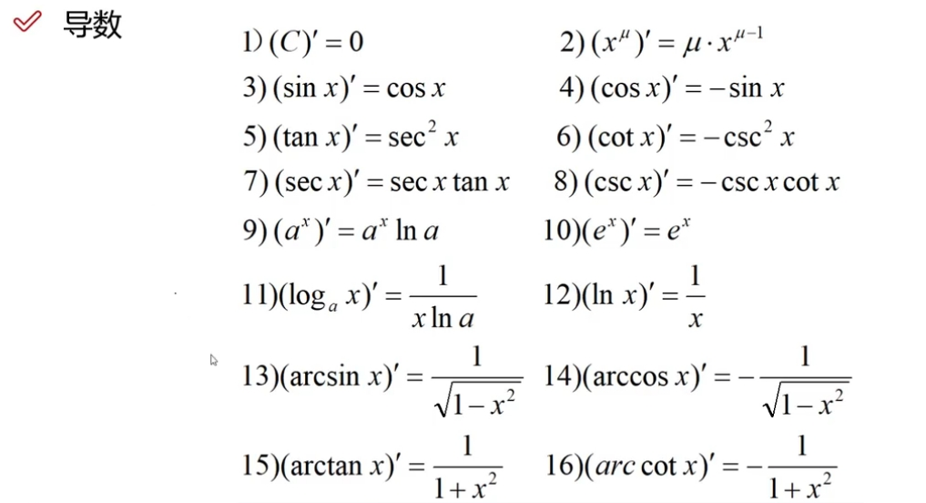 1)函数的定义2)分段函数,反函数,显函数,隐函数3)奇函数,偶函数,周期性,单调性4)数列,通项,收敛和发散5)极限:函数在x0的邻域有定义,x->x0时,f(x)趋向于一个常数6)无穷小:以0位极限;无穷大:x->x0时,f(x)趋向于无穷大,与无穷小倒数关系7)连续性:delta x趋向于0时,delte y也趋近于0,则y=f(x)在x处连续8)导数