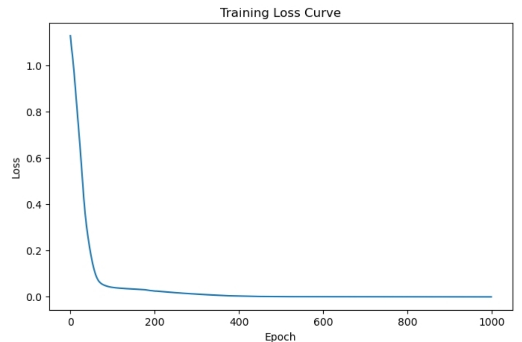 for epoch in range(epochs): optimizer.zero_grad() outputs = model(X_train_tensor) loss = criterion(outputs, y_train_tensor) loss.backward() optimizer.step() losses.append(loss.item()) if (epoch + 1) % 100 == 0: print(f"Epoch {epoch+1}/{epochs}, Loss: {loss.item():.4f}")