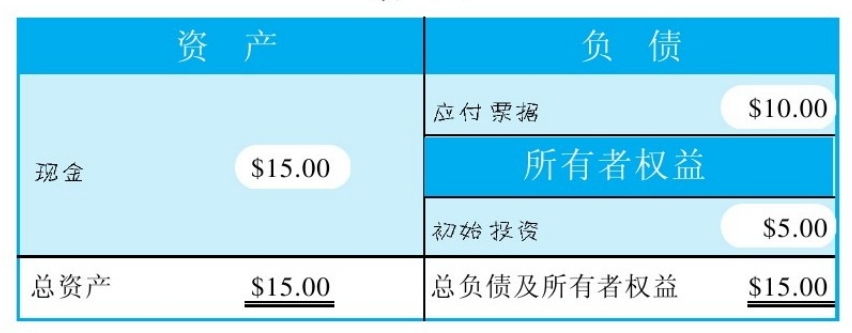 - 总资产:15美元=右边