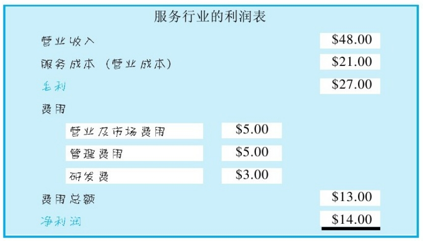 服务业公司的利润表