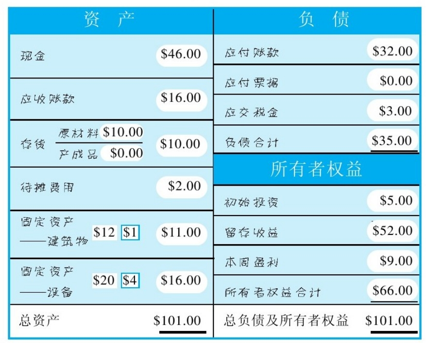 - 税前利润:应交税金3美元+本周盈利9美元=12美元,留存收益52美元,所以税前收益64美元